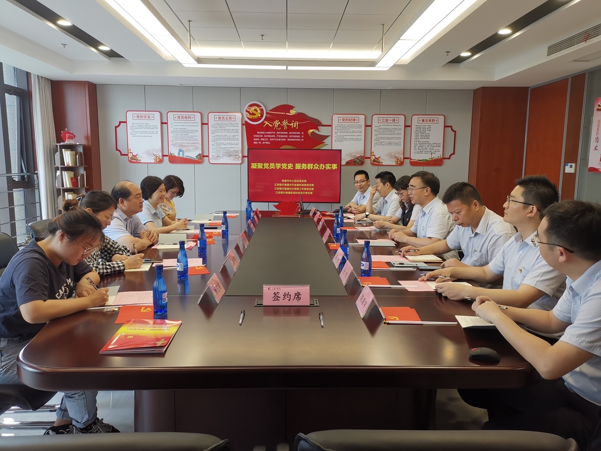 为创新基层党建工作载体,提高基层党建工作水平,实现“党建引领、业务互助、优势互补”的基层党建工作新格局,7月6日,南通市中心血站和江苏银行南通分行开展“统筹共建”签约活动。江苏银行南通分行副行长黄世成、党群工作部党支部书记凌凯菲、江苏银行南通分行金融科技部党支部书记周广生、江苏银行南通跃龙科技支行党支部书记孙伟等出席活动,南通市中心血站党支部书记许诚、副书记汤蓉蓉带队参加了此次活动。