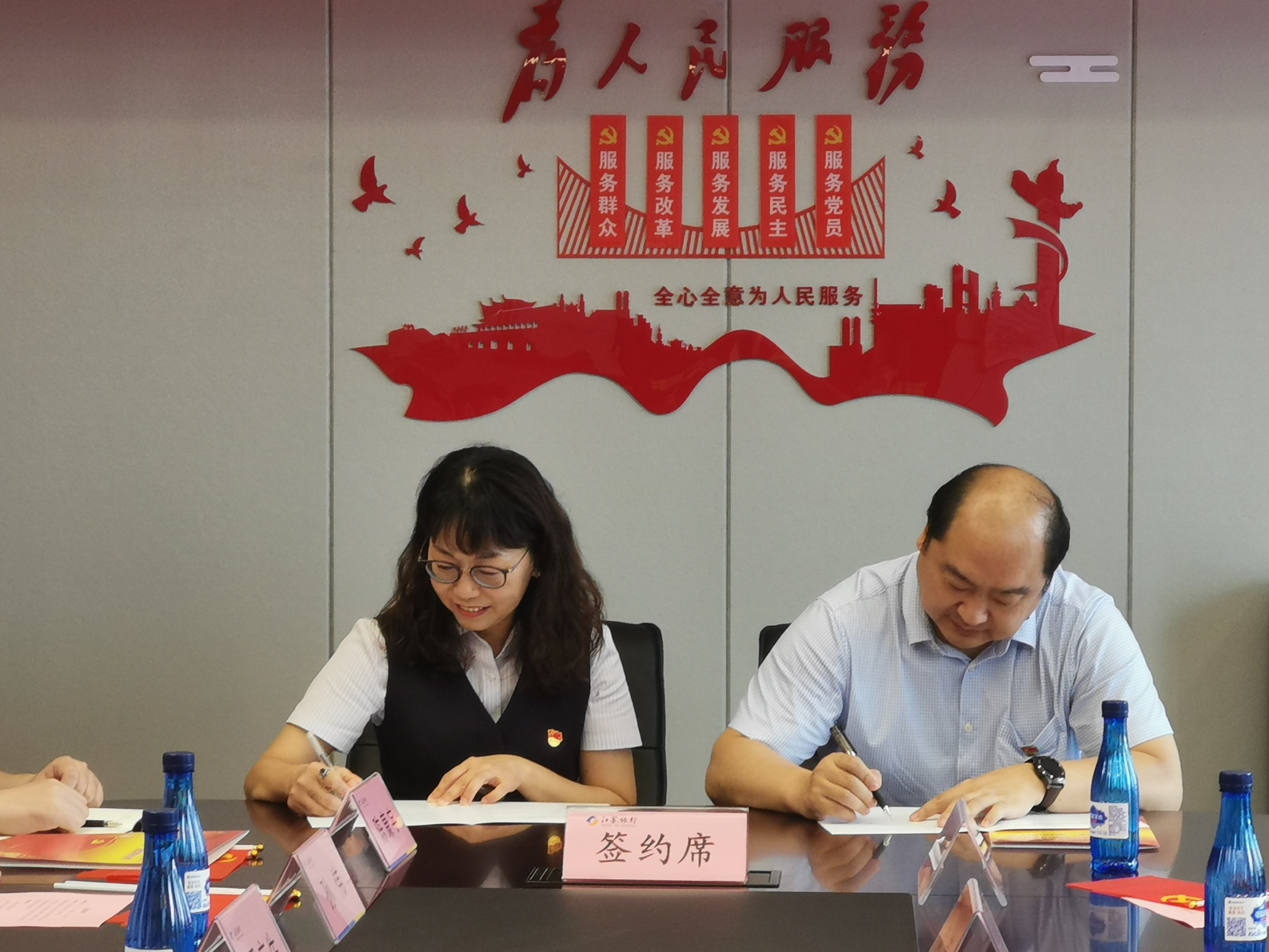 会上,黄世成副行长和许诚书记交流介绍了各自单位发展情况,许诚书记与江苏银行南通分行党群工作部党支部、江苏银行南通分行金融科技部党支部、江苏银行南通跃龙科技支行党支部分别签订党建共建协议,并就下一步如何发挥各自优势寻找结对点开展讨论。双方共同表示要坚持长期开展党建共建活动,优势互补、共同发展,为实现“凝聚党员学党史 服务群众办实事”的目标奠定坚实的基础。