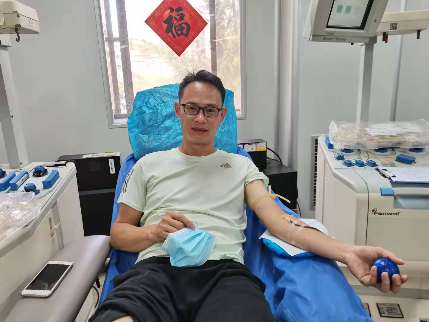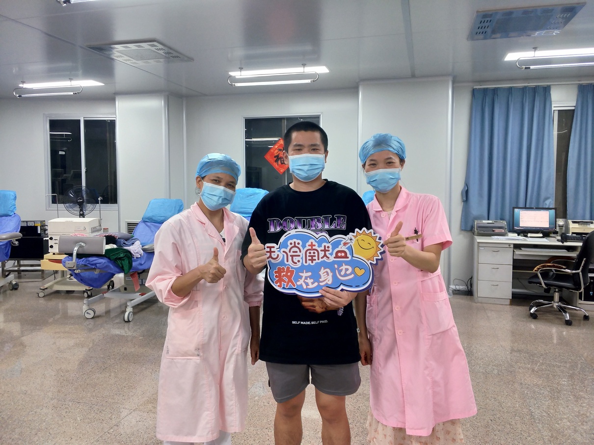 还有一位来自浙江的林同学,他是柳州市铁道技术职业学院的学生,现正处在实习前的紧张学习中,加之当前疫情防控的管理规定,学生不能随意离开学校,林同学主动与班级辅导员说明情况,辅导员非常支持他献血拯救生命的行为,特批了外出假条,他19:40赶到血液中心,在了解到患者的情况后,他义无反顾的献出了400毫升血液。他表示:这是他在柳州第二次献血,他喜欢柳州,愿意为柳州市民尽一份自己的力量!