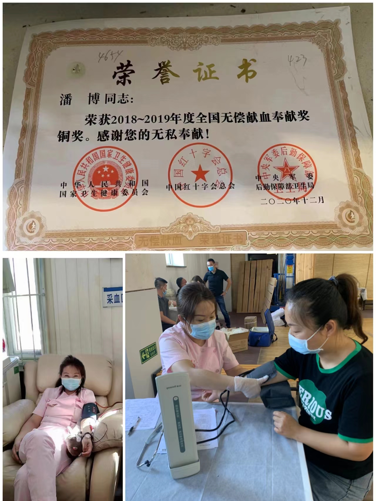 血站医师每次看到家属因救治急危重亲人,急需用血的急切眼神和恳求的语气,即使在工作疲劳的状态下,也会义无反顾地捐献血液。这次被血站推荐评为“包头市优秀医师”的潘博医师,就是血站医师中危急时刻捐献血液的代表。潘博医师自参加工作以来多次捐血,已捐献全血1400ML、捐献单采血小板19个治疗量,共计捐献血液5200ML,荣获“2018—2019年度全国无偿献血奉献奖铜奖”的荣誉称号。