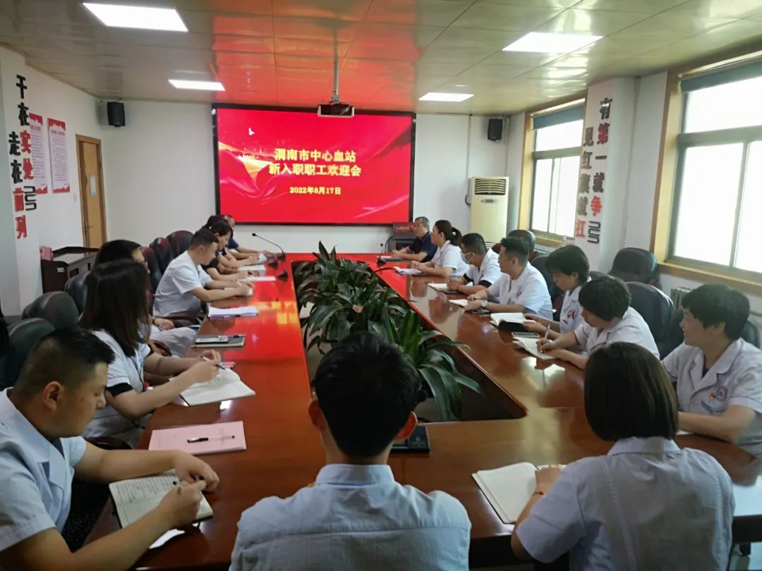 为加大职工关心关爱力度,切实提升新进职工的归属感和幸福感,营造良好的血站文化氛围,8月17日上午,渭南市中心血站召开新入职职工欢迎会。会议由党总支副书记李北斗主持,领导班子成员及各科室负责人、职工代表参加会议。