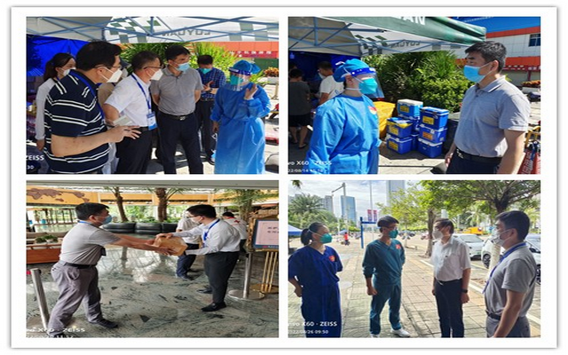 上图:林俊杰(左一)代表上海援琼医疗队采样队发言