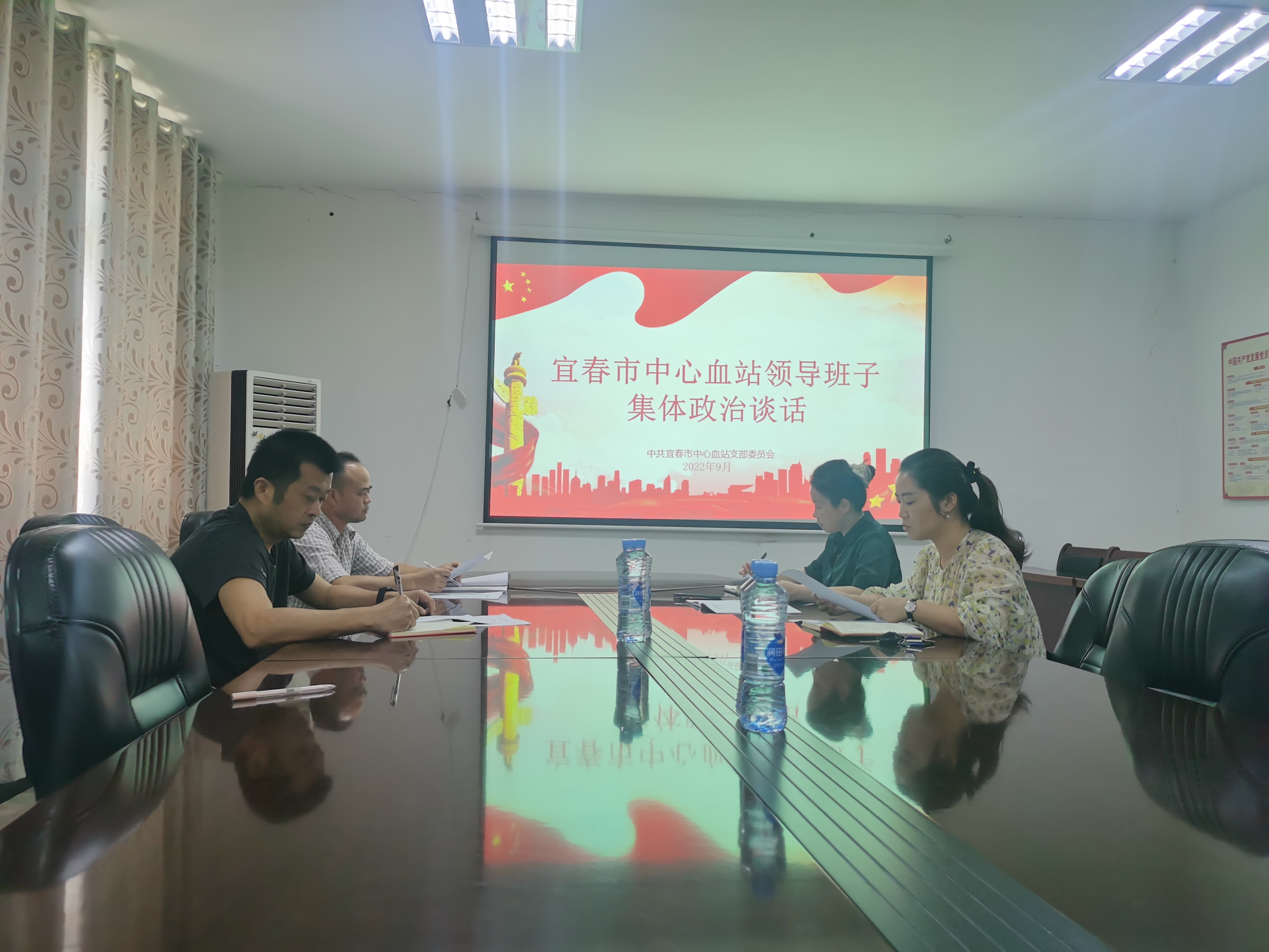 为贯彻落实省委和市委关于常态化开展政治谈话部署,加强对“一把手”和领导班子监督,推动“一体化”干部队伍建设走深走实,9月8日,宜春市中心血站党支部书记、站长袁小玲对领导班子成员开展了一次集体政治谈话。
