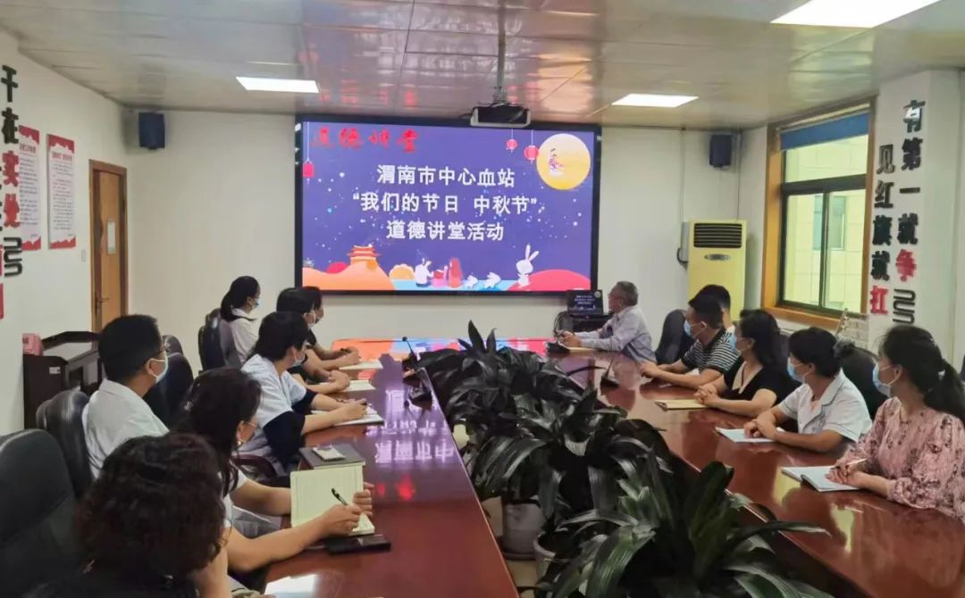 仲秋九月,丹桂飘香。为进一步弘扬中华民族的传统美德和优秀文化,深入开展“我们的节日”主题系列活动和“道德讲堂”活动,大力培育和践行社会主义核心价值观,9月8日上午渭南市中心血站组织干部职工开展了以“我们的节日·中秋节”为主题的道德讲堂活动。
