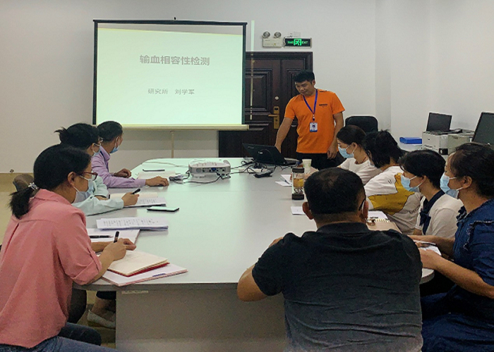 会上,刘学军以《输血相容性检测》为题,向与会人员分享了自身的经验,将专业性的工作通过通俗易懂的话语为供血科的同事进行了讲解。在课后的互动交流会上,供血科同事积极提问,刘学军同志耐心的专业解答让供血科的同事们了解到患者输血前必须经过一系列专业的检测才能保障输血的安全、及时和有效,有效提升了供血科同事解答医院申请用血时的专业能力。