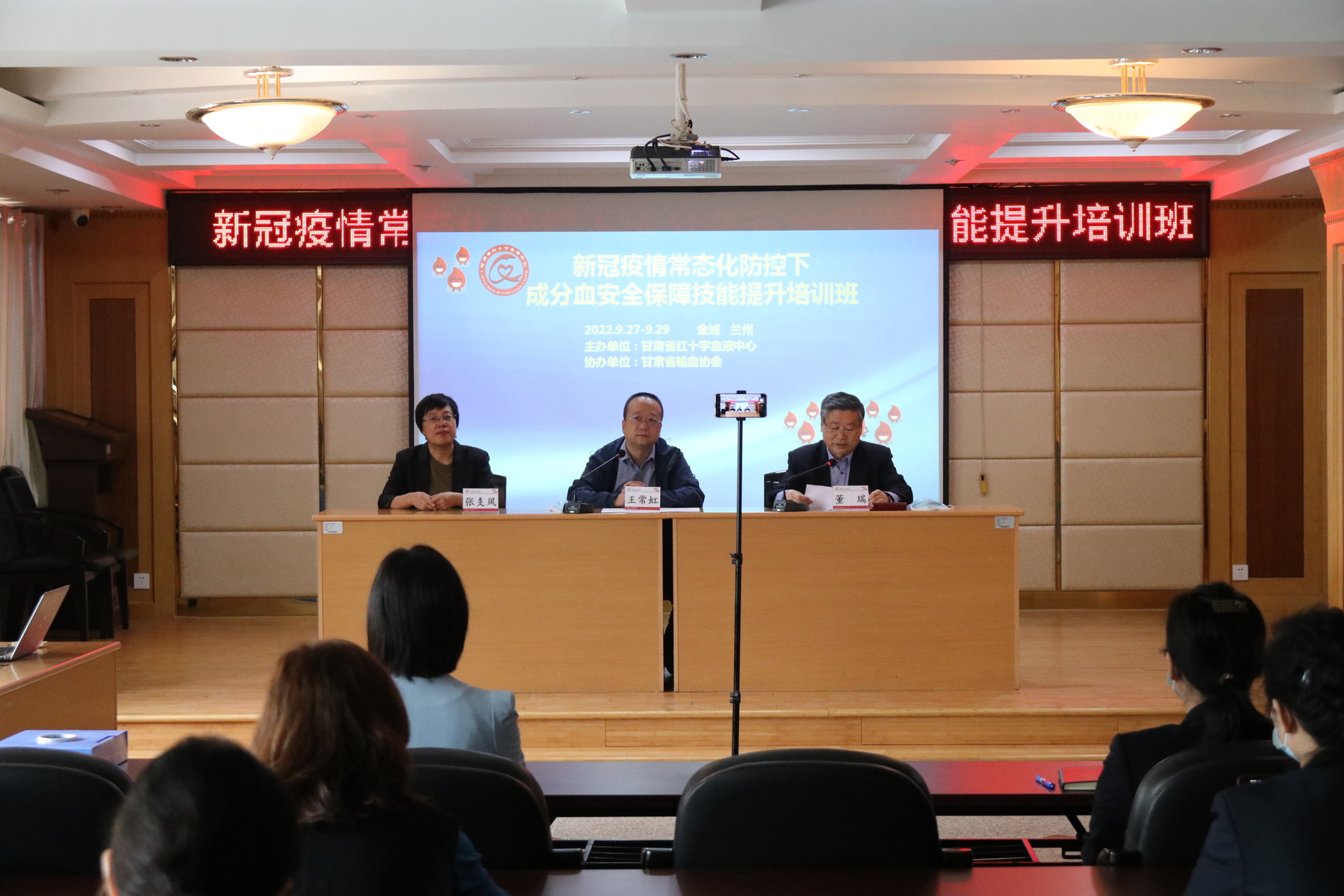 为提升在新冠疫情常态化防控下我省血站血液制备安全保障技能,9月27日-29日由省血液中心主办、省输血协会协办的“全省新冠疫情常态化防控下成分血安全保障技能提升培训班”在兰州举办,为统筹疫情防控和培训班的顺利开展,此次培训班采用线上培训方式。省血液中心主任王常虹出席培训班开幕式并致辞。