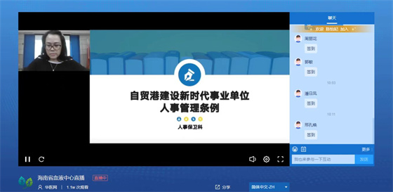 9月29日,海南省血液中心采取线上培训的方式,开展《自贸港建设新时代事业单位人事管理条例》知识培训,本次培训由人事保卫科科长谢青主讲,中心近250名干部职工参加培训。