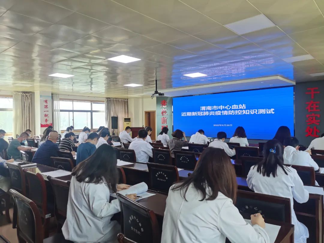 为全面做细做实疫情防控工作,加强新冠肺炎防护知识普及宣传,提高干部职工疫情防范意识,进一步压实疫情防控工作责任,9月29日上午,渭南市中心血站组织全体干部职工开展了近期疫情防控知识考试。