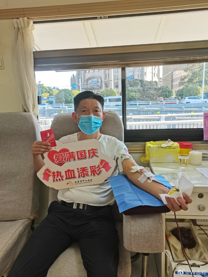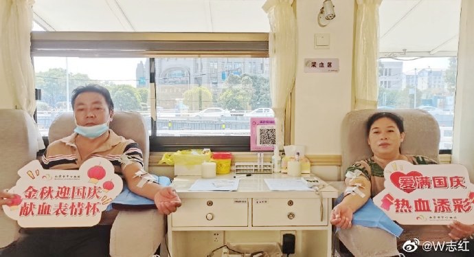 国庆期间,黄和平、朱正香夫妻一起来献血车献爱心,献血过程中俩人说道:以后献血都一起来,更好记献血时间。淳朴的话语感动在场的工作人员。