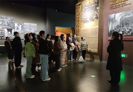 活动当天,中心团员青年首先来到淮海战役烈士纪念塔,缅怀革命先烈,传承红色基因。在烈士纪念塔下,大家齐唱国歌、重温入团誓词、向烈士墓碑鞠躬默哀,表达对先烈们的深切哀思。随后,大家怀着崇高的敬意走进淮海战役纪念馆,在纪念馆讲解人员的带领下,先后参观了战前形势厅、战役实施厅、战役胜利厅等全部6个展厅,期间,大家认真地聆听,细致地参观,通过丰富的图文展板、馆藏资料展示、投影体验等感受革命精神的熏陶,进一步坚定团员青年的理想信念,让英烈精神融入团员血液、涤荡青年心灵。