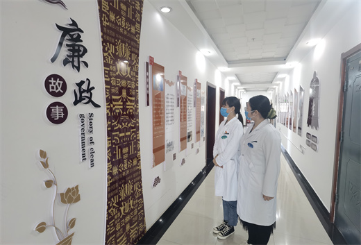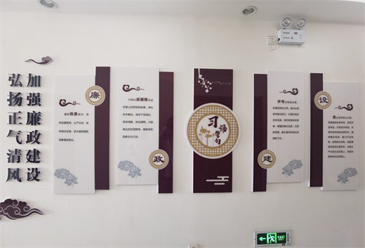 近50米的廉政文化长廊包括主题墙、习语金句、党纪法规、警言警句、廉洁故事等内容,摘录了习近平总书记关于反腐倡廉的重要论述和讲话要求,警示广大党员干部要“以公倡廉、以威树廉、以德养廉、以清保廉”,踏实做事,牢筑‘拒腐防变’的思想道德防线。“一钱太守”、“一贫如此”、“丹心要学月月红”等古今廉洁故事,以及孔子、韩非、苏轼等历史名人论廉洁的诗句,使历史和廉洁文化教育有机融合。廉政文化长廊设计精巧、图文并茂,集观赏性、艺术性、思想性、教育性于一体,使职工身处其中便能时时感受到强烈的廉政文化气息,潜移默化接受教育熏陶。