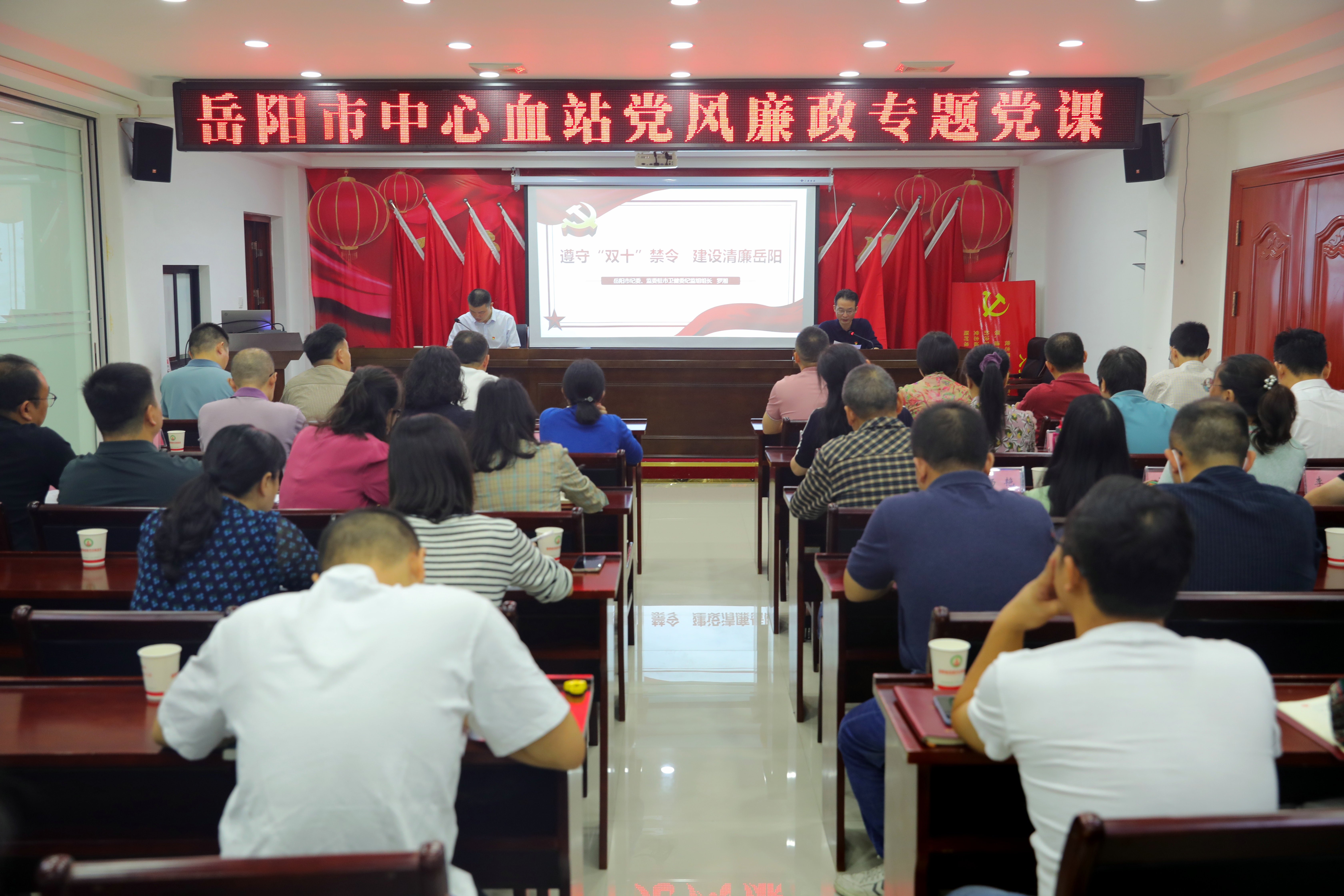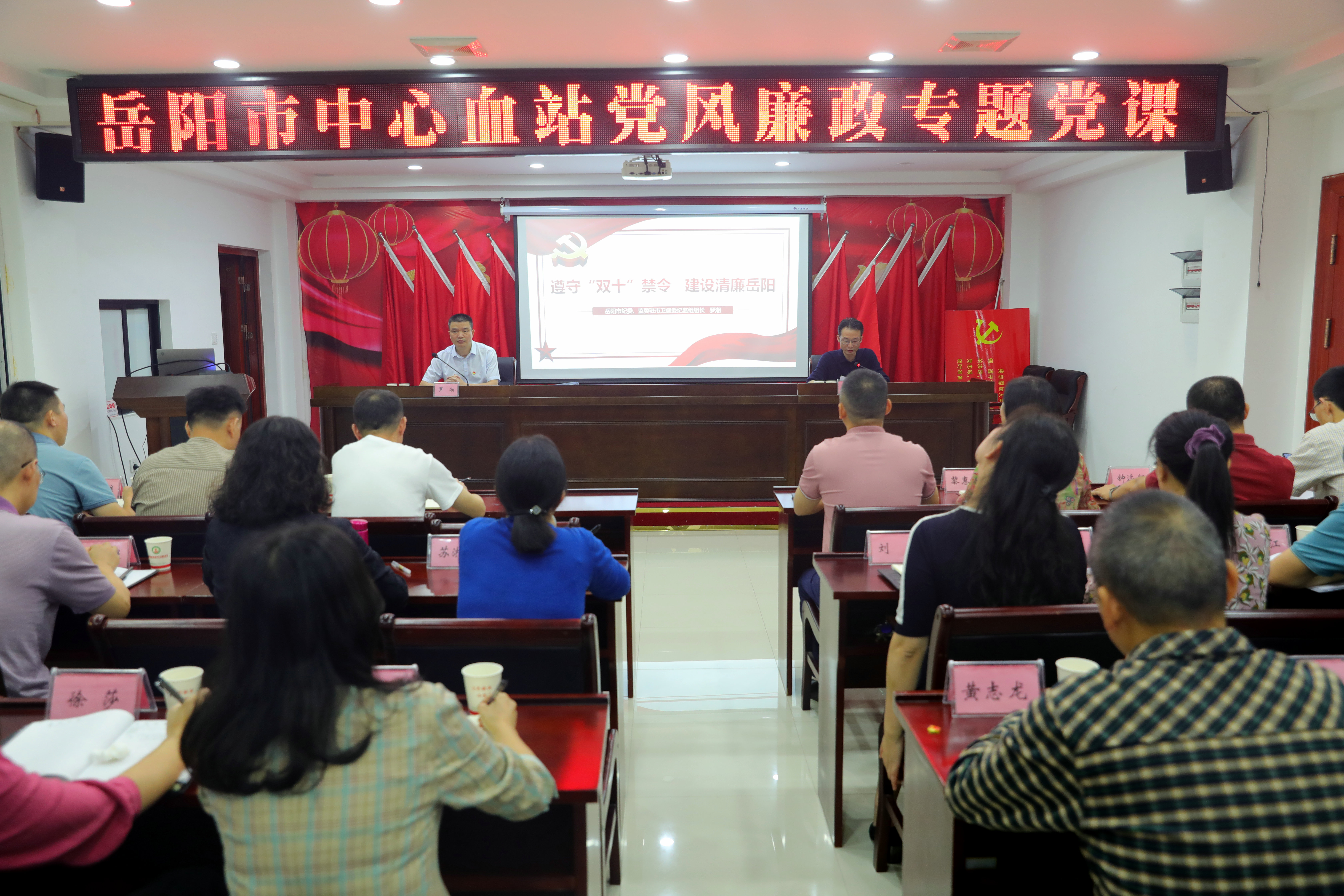 9月28日上午,市卫健委党组成员、市纪委监委驻市卫健委纪检监察组组长罗湘来市中心血站讲授党风廉政教育专题党课,全站党委班子成员、党员干部、入党积极分子、各科室负责人参加,会议由站长周砺宏主持。