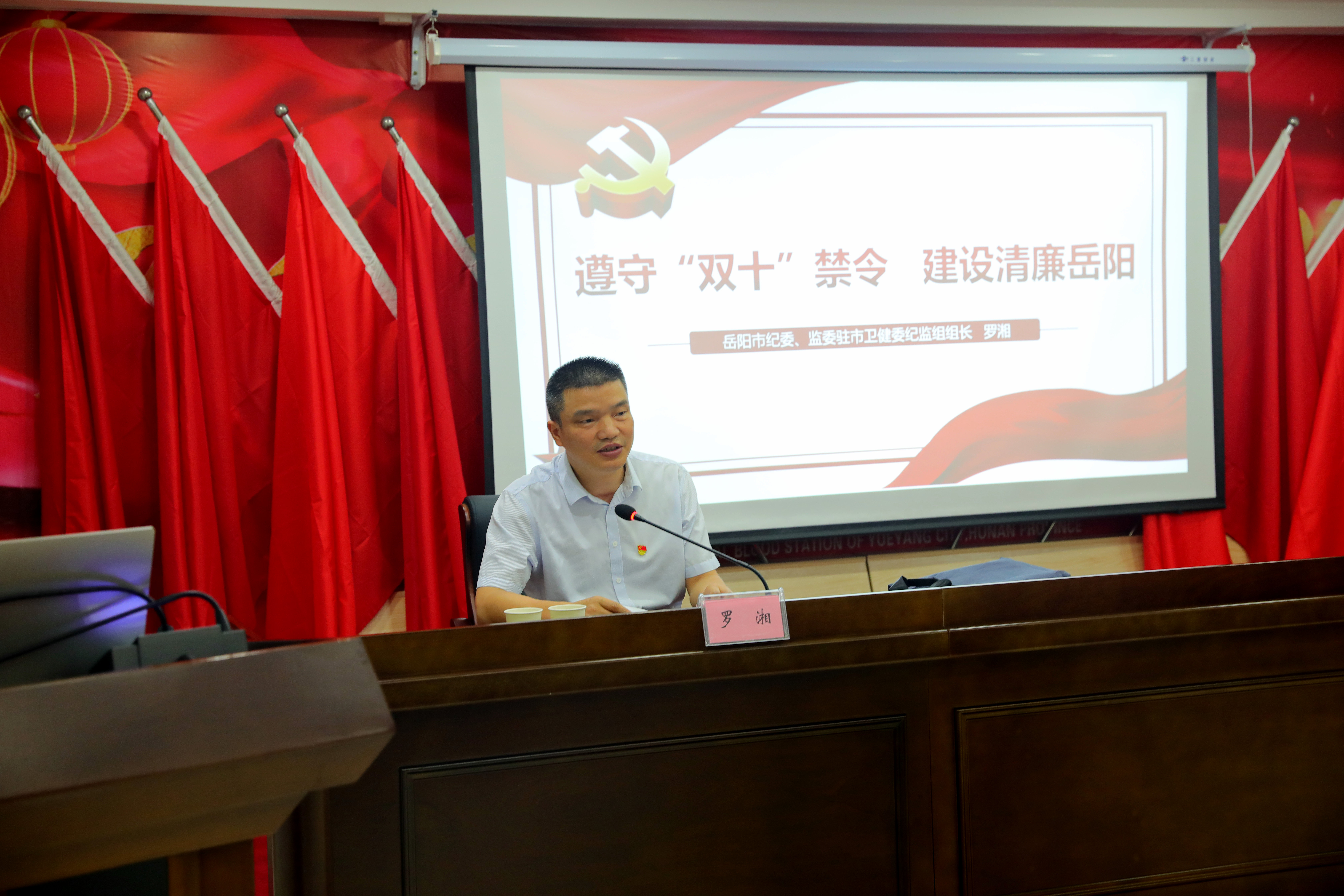 会议开始,市卫健委党组成员、市纪委监委驻市卫健委纪检监察组组长罗湘带领大家重温了中央八项规定及其实施细则精神。接着以《遵守“双十”禁令 建设清廉岳阳》为主题开展了一堂深入浅出、生动鲜活、见解独到、引人深思的党风廉政教育专题党课。罗湘组长就打牌赌博“十严禁”和违规吃喝“十严禁”进行了详细的解读和举例说明,并要求医卫战线的广大党员干部严格自觉遵守,作好表率:一是要坚持问题导向,深刻认识继续铁拳整治干部纪律作风突出问题的必要性紧迫性;二是要聚焦工作重点,切实提升纪律作风突出问题专项整治的聚焦度精准度;三是要坚持抓常抓实,推动形成党员干部纪律作风新转变新成效。