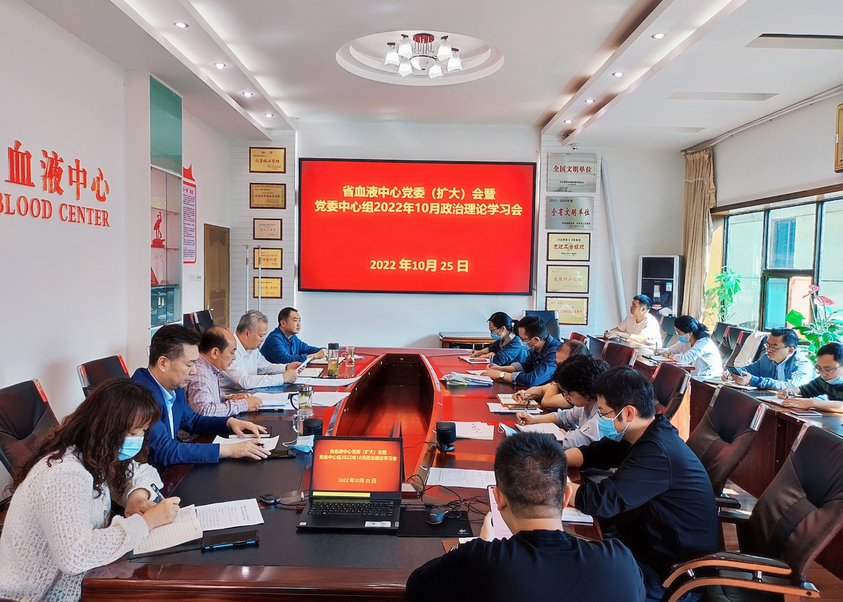 10月25日,省血液中心召开党委(扩大)会暨党委中心组2022年10月政治理论学习会,专题传达学习党的二十大精神,结合实际研究部署学习宣传贯彻落实工作。中心党委书记朱思刚主持会议并讲话,中心领导班子成员出席会议。