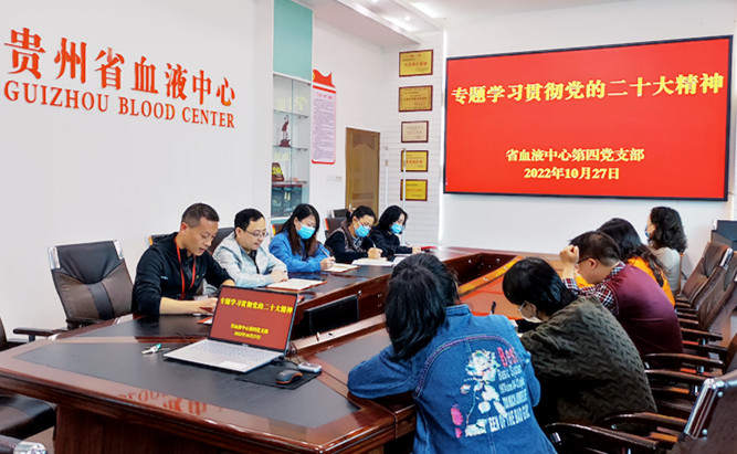 2022年10月27日,省血液中心第四党支部组织召开10月党员大会专题学习党的二十大精神,结合支部实际研究部署学习宣传贯彻落实工作。支部全体党员、发展对象参加会议。