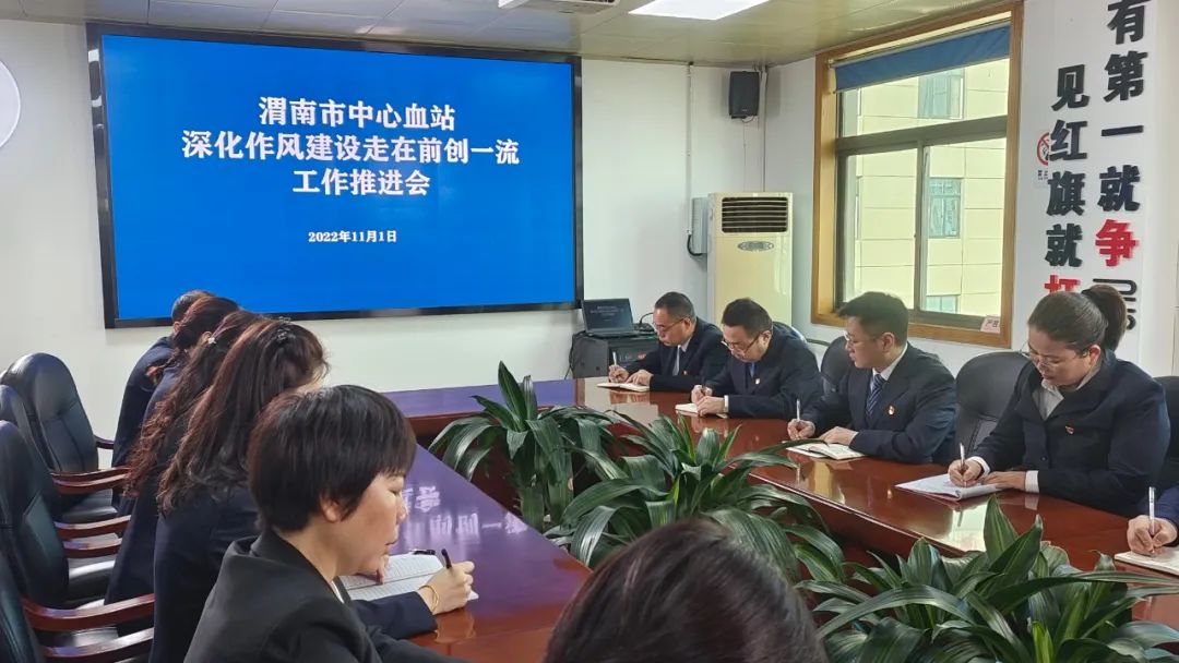 11月1日,渭南市中心血站党总支组织召开深化作风建设走在前创一流工作推进会,党总支成员、各科室负责人参加了会议。