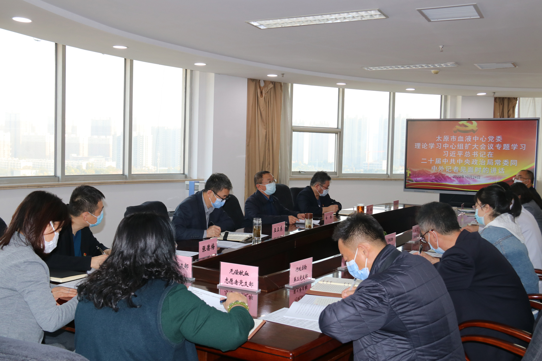 10月24日下午,太原市血液中心党委召开理论学习中心组扩大会议,专题学习中国共产党第二十届中央委员会第一次全体会议公报及习近平总书记重要讲话。