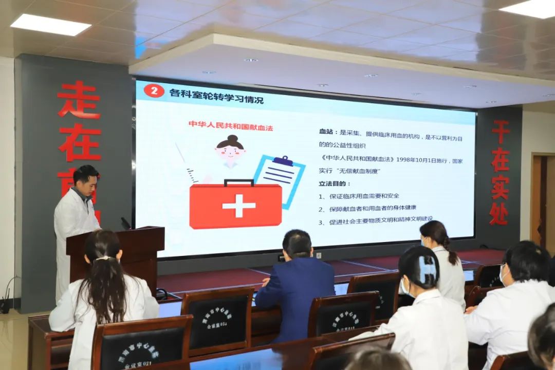 吕广博同志是血站2022年引进的高层次人才,入职后先后在站办公室和各业务科室轮岗学习。会上,他就此次轮岗的心得体会及学习情况向大家做了详细汇报。吕广博表示,血站人积极向上、认真负责的态度和精神时刻感染着他,在这样一个健康向上的平台上,他要努力学习血站人“干在实处 走在前列”的干事创业精神,为渭南市无偿献血事业发挥自己的才能和优势。