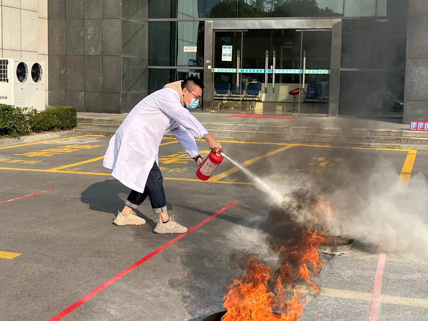 竞赛由理论笔试和灭火实际操作两个部分组成,各个科室踊跃报名,共有41名职工参加。理论考试中,各位选手积极思考、沉着应答,将平时所学跃然纸上。实操部分气氛更是火热,呐喊声加油声,声声入耳;助威声鼓励声,声声不绝。赛场上,选手们一个个沉着冷静——目视检查、干粉混匀、拔取插销,一提二抬奔赴火点,随着粉剂的喷射而出,一个个火点被顺利扑灭,而选手们精准连贯的操作也赢得观众们一阵阵喝彩。