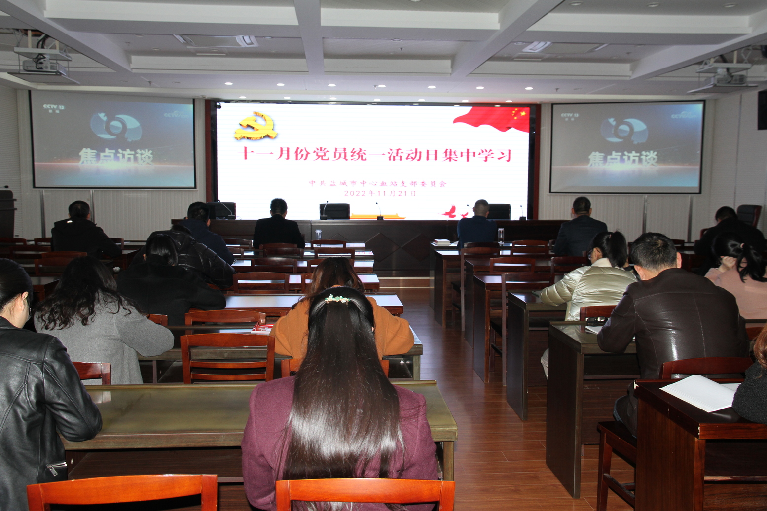 11月21日下午,盐城市中心血站党支部开展“党员统一活动日”集中学习活动。站领导班子成员、中层干部、全体党员参加会议。会议由副站长乐永辉主持。