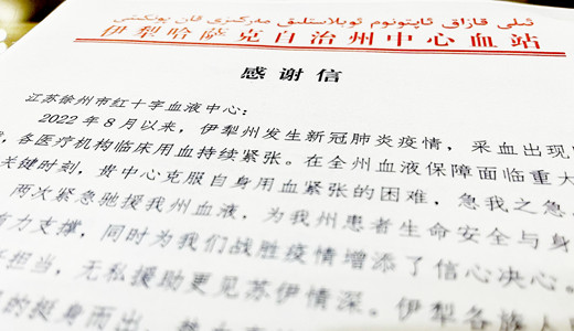 日前,一封来自伊犁州中心血站的感谢信送到了徐州市血液中心办公室,以感谢我中心在疫情防控关键时期“热血”相助,紧急调血解燃眉之急,字里行间表达出合力抗疫的团结之情,共绘两地最美“同心圆”。