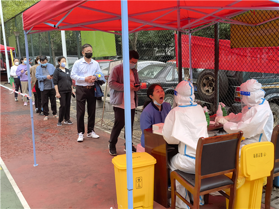 25日-27日,市中心血站15名采样医护人员分批次前往苏仙区多个核酸检测点支援采样工作,以最饱满的热情投入到全员核酸采样的“战斗”中。面对大量的核酸采样任务,采样人员与时间赛跑,穿着闷热的防护服,一次次弯腰采样、一遍遍标准手部消毒,一丝不苟地保证每一次采样的成功和每一份标本的合格。“作为一名党员、一名医务工作者,在这次没有硝烟的战斗中发挥光和热,是我应有的责任和担当。”市中心血站采样医护人员王娟娟说到。