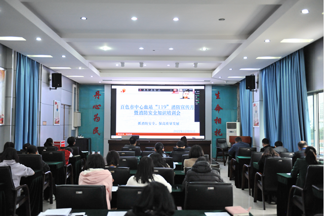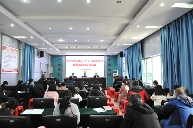 为全面深入贯彻落实习近平总书记关于安全生产的重要论述精神,扎实推动“119”消防宣传月活动,进一步强化干部职工突发事件应急救援能力,11月30日下午,百色市中心血站开展消防安全知识培训及火灾应急疏散演练活动。血站全体干部职工参加。