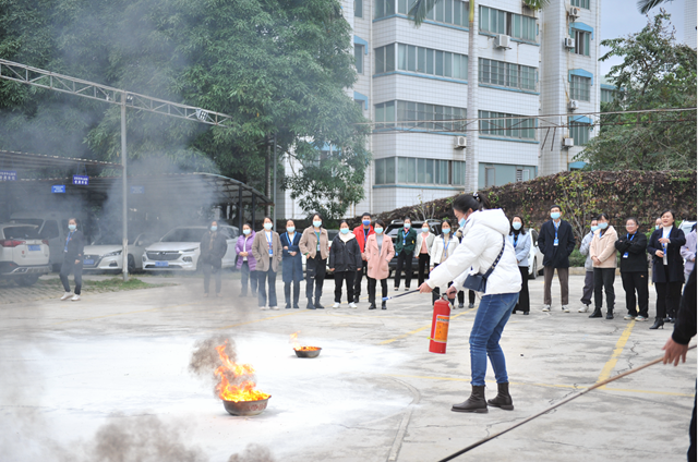 培训结束后,全体干部职工在模拟业务楼失火情况下进行消防应急避险疏散、手提式干粉灭火器使用和消防栓灭火的实操演练,将理论与实践相结合,进一步提升干部职工应急处置能力。