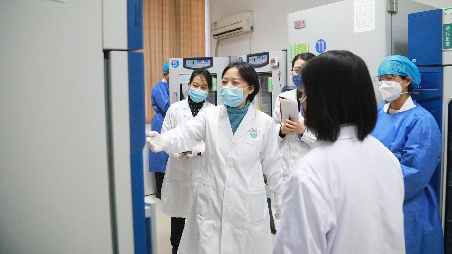 现场督导前,遵义医科大学附属医院院长余昌胤代表全院职工向专家组表示热烈欢迎,输血科副主任(主持工作)黄美容向检查组汇报近年临床用血工作开展情况。随后,专家组依照《贵州省三级医院评审细则表》《临床输血技术规范》等相关要求,从硬件配置、科室管理、制度及落实情况、程序文件、持续改进措施、临床合理用血和疗效评价、记录档案等方面对输血科进行现场检查。