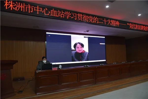 12月16日,株洲市中心血站以“云课堂”线上视频会议方式举行“学习贯彻党的二十大精神——‘党代表宣讲党代会’专题宣讲活动”,株洲市第十三次党代会党代表、血站党总支委员、办公室主任罗莉娜向党员干部宣讲党的二十大精神。站党总支书记、站长刘昕晨主持会议。
