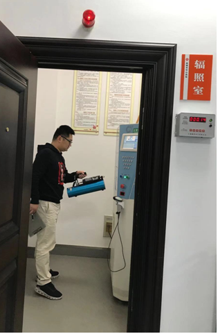 辐射环境是生态环境的重要组成部分,核与辐射环境安全是国家环境安全的重要内容。近日,江苏省辐射环境检测部门对盐城市中心血站血液辐照环境进行检测。检测人员利用FH40G型便携式X-γ辐射剂量率仪,对血液辐照仪四周屏蔽体外及周边区域辐射剂量。检测结果均符合国家相关要求,血液辐照环境安全。