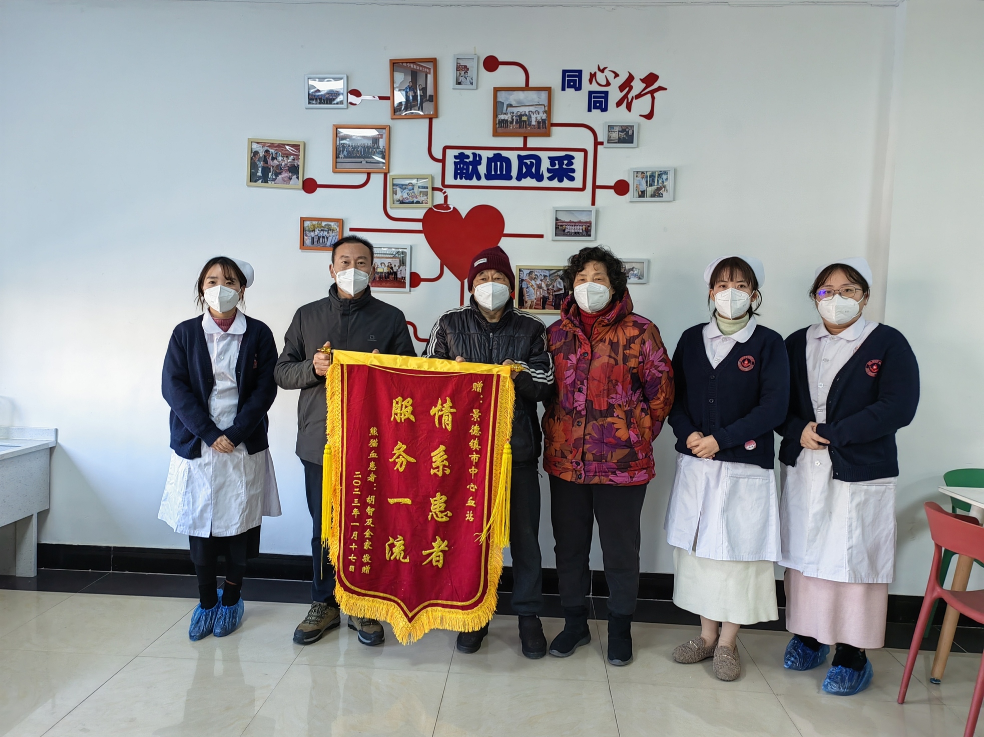 1月18日,新年伊始,市中心血站又收到一面写着“情系患者,服务一流”的锦旗。这是市第三人民医院血液科熊猫血患者胡智及全家送给市中心血站的,锦旗字里行间透露着用血患者及家属对血站领导及工作人员的感激之情。