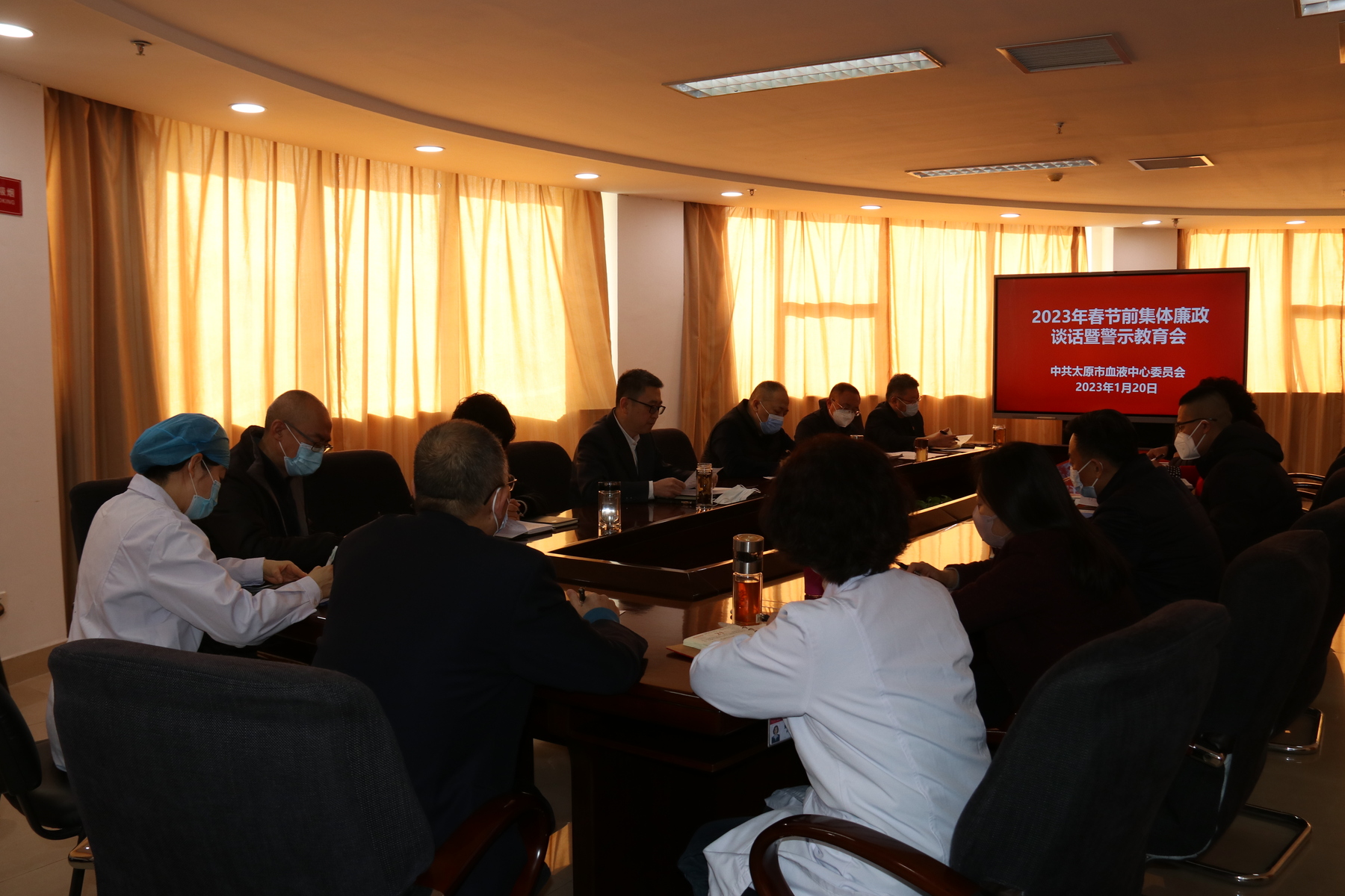 2023春节将至,为深入贯彻落实党的二十大精神,持之以恒纠治“四风”问题,巩固和拓展落实中央八项规定精神成果,营造风清气正、崇廉尚俭的良好节日氛围,1月20日上午,太原市血液中心党委组织全体中层以上领导干部召开2023年春节前集体廉政谈话暨警示教育会议。