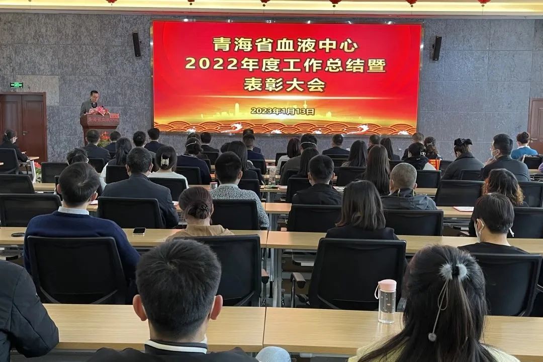 2023年1月13日,青海省血液中心组织召开2022年度工作总结表彰大会。会议以习近平新时代中国特色社会主义思想为指导,深入学习贯彻习近平总书记关于卫生健康和疫情防控工作的重要指示批示精神,全面回顾总结2022年中心各项工作,科学分析采供血事业面临的新形势,安排部署2023年重点工作,并对2022年度荣获先进称号的集体和个人等进行表彰。
