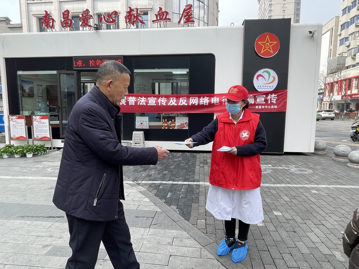 为助力做好打击治理防范电信网络诈骗犯罪工作,提高我站职工和爱心市民安全防范意识,2月7日,南昌市中心血站职工到各街头献血点开展反电信网络诈骗志愿宣传服务活动。