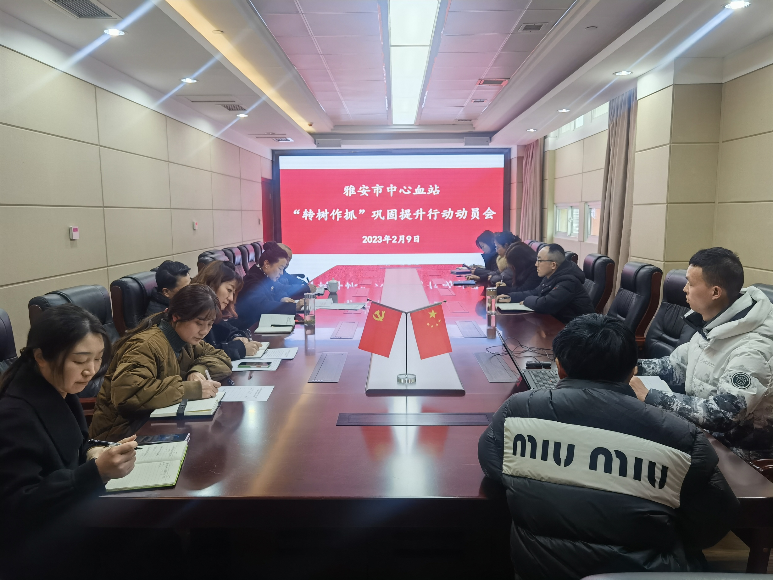 2月9日,市中心血站召开“转作风、树新风、作表率、抓落实”巩固提升行动动员会,会议由党支部书记、站长喻琼主持,站班子及中层干部参会。