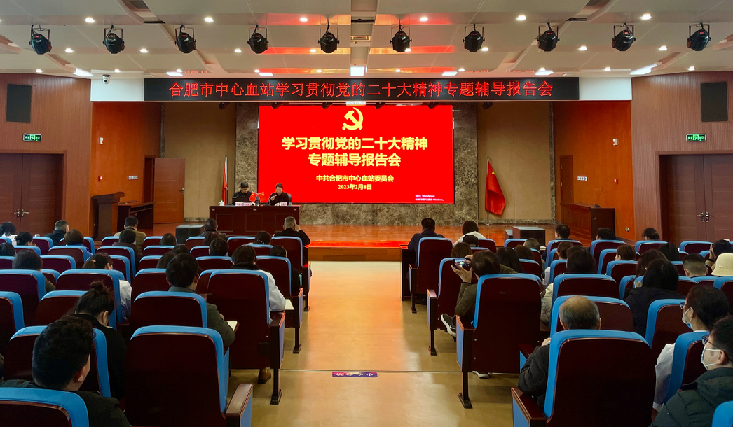 为深入学习贯彻党的二十大精神,2023年2月8日至9日,安徽省血液中心召开全面从严治党专题辅导报告会,邀请合肥市委党校朱梅光教授、刘玉勉教授分别围绕“党的二十大精神解读”和“加强党内法规制度建设 推进全面从严治党”作宣讲报告。中心全体党员干部职工、民主党派人士,董大水库、驻地卫楼社区和合肥东骅康复医院(非公党建联系单位)党员干部等近150人参会学习。