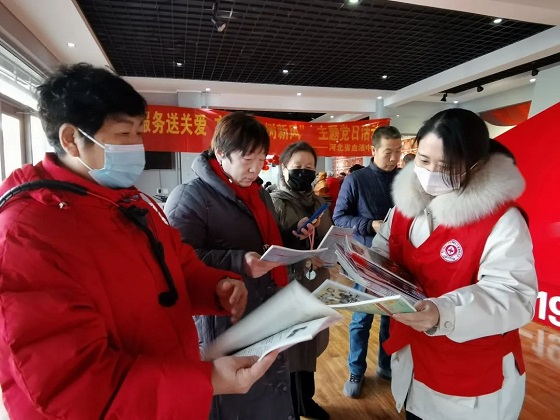 河北省血液中心41名党员同志参与了志愿服务活动,共计为居民赠送了血液科普知识画册、血液常识手册、无偿献血宣传品等80余份宣传纪念品。