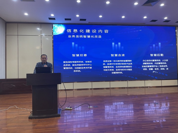 省血液中心信息管理科科长冯飞信息化建设现状、存在差距以及不足、海南省血液信息化规划方向及项目建设意义四个方面,向大家汇报了中心历年来信息化建设情况。