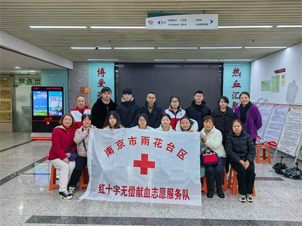 为缓解临床用血需求压力,宣传无偿献血精神,2月12日,雨花台区无偿献血服务队的25名队员来到了南京红十字血液中心的机采大厅,这是他们近期举行的第三次无偿献血活动,此次活动19人成功进行献血,总计捐献35个单位。