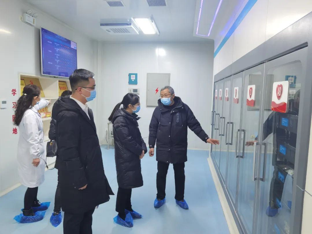 在市中心血站副站长吴剑的带领下,依次对无偿献血爱心科普基地、血液供应科、机采科、成分制备科、党建VR室、党建长廊等科室进行了参观,并观看了血站宣传纪录片。
