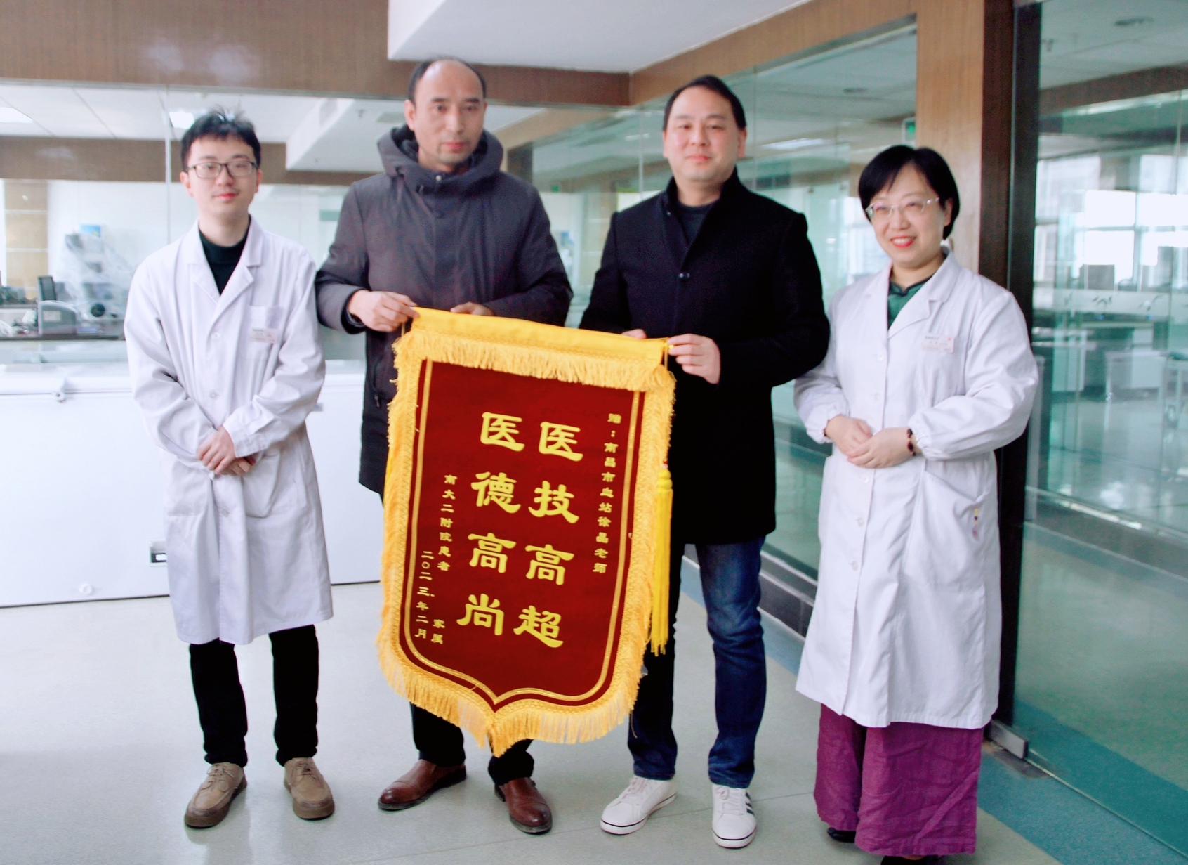 “感谢南昌市中心血站找到与母亲基因相匹配的血小板,感谢无偿献血者的无私付出!让我母亲得到了很好的治疗,减轻了疾病带来的痛苦。”日前,毛奶奶的儿子将一面锦旗送到南昌市中心血站输血研究室。
