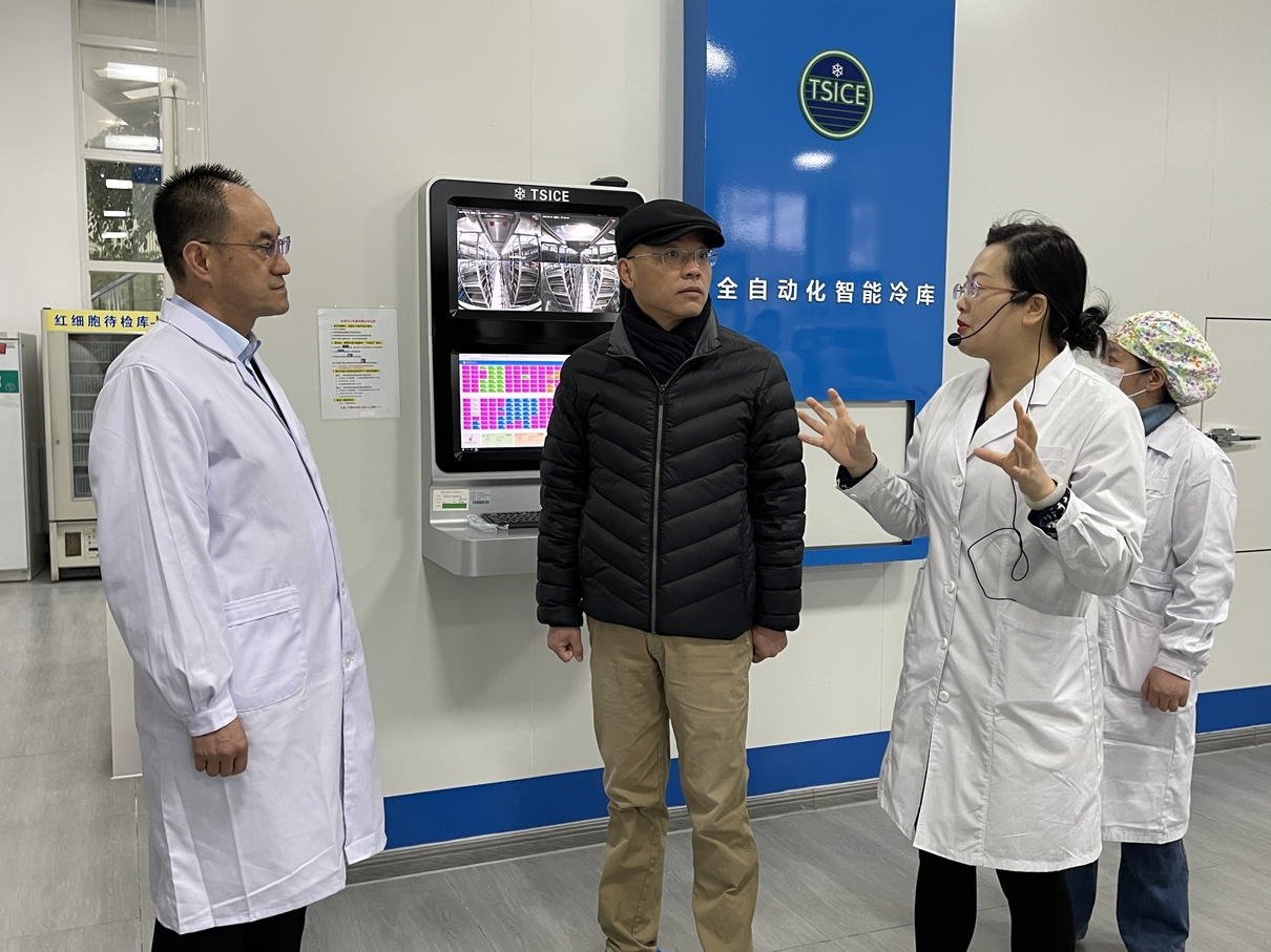考察过程中,来明组长查看了血液成分制备、血液储备供应、血液检测、质量管理、无偿献血宣传等工作,详细了解了中心血液库存、血液应急保障、信息化建设、质量控制、信息安全等情况。