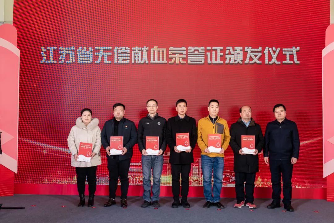 丁文艺为受邀参加活动的无偿献血志愿者们颁发江苏省无偿献血荣誉证,并对他们长期以来关心、支持无偿献血事业的善举表示感谢。