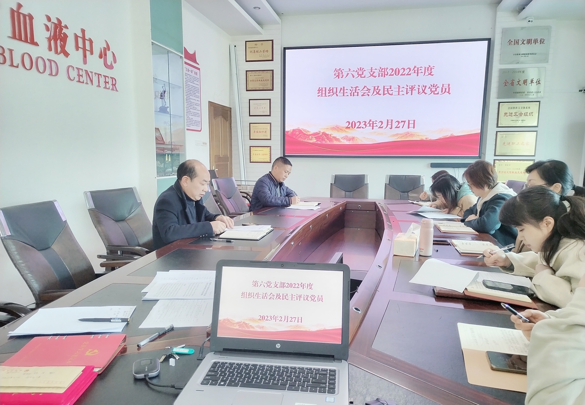 2月27日,省血液中心第六党支部组织召开2022年度组织生活会,按要求开展民主评议党员工作。省血液中心党委书记朱思刚以普通党员身份参加会议。