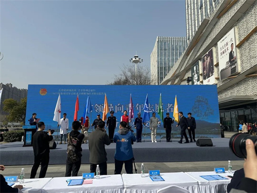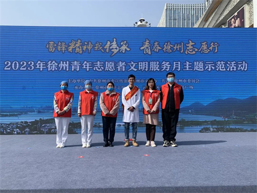 启动仪式上,中心团总支书记孔野作为2022年度徐州市十佳优秀青年志愿者登台领奖,并代表市医护志愿者群体参与青年志愿者服务队授旗仪式。