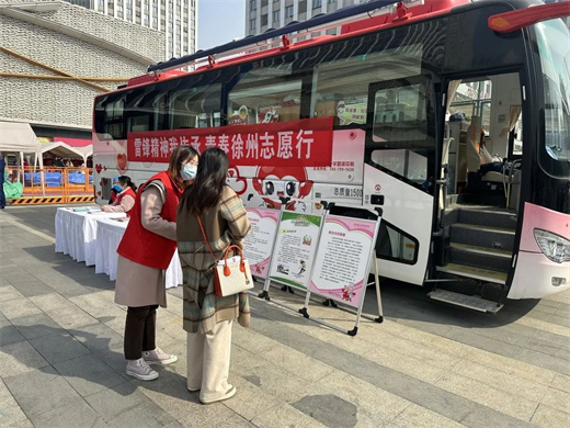 春光作序,万物和鸣。3月4日上午,由徐州市委宣传部、市文明办、团市委共同主办的徐州市青年志愿者文明服务月主题示范活动在云龙万达广场举行。结合“雷锋精神我传承 青春徐州志愿行”的活动主题,血液中心团总支组织青年志愿者参与并开展献血宣传及志愿服务活动,为现场增添一抹无偿献血“志愿红”,让雷锋精神在新时代得以延伸、传承。