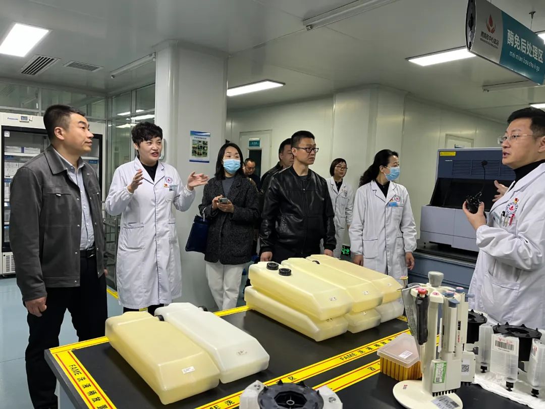 平凉血站一行人在血站宣传招募科科长孙鹏的引导解说下,依次参观了无偿献血科普教育基地、血液供应科、机采科、成分制备科等职能科室,并参观了血站党建长廊、VR党史学习教育体验室及多个行政科室。