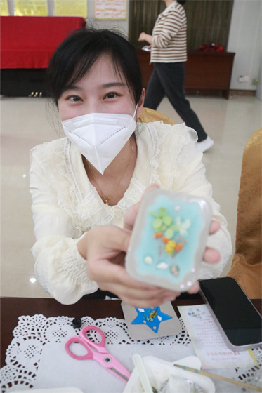 “香遇”三·八,美丽如你。在专业老师的指导下——一场温柔与香薰的“约会”正式拉开序幕。经过构图设计、调香、融蜡、入模等四个环节,一个个香薰蜡牌手工作品成品美丽展现在大家的手中。