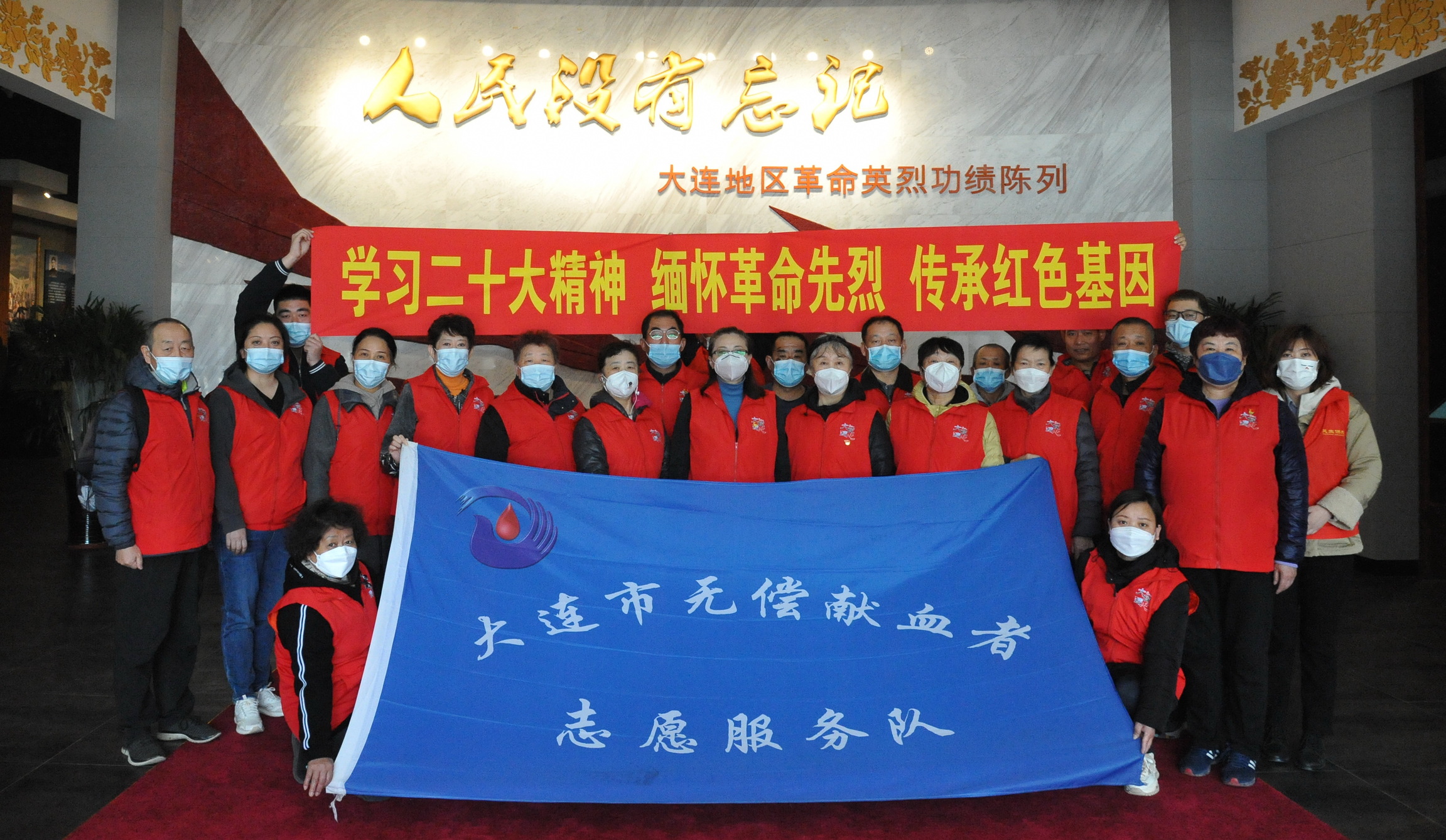3月23日上午,大连市无偿献血者志愿服务队与民生保险大连分公司服务分队部分代表,怀着十分崇敬的心情来到大连市烈士陵园,开展“学习二十大精神,缅怀革命先烈,传承红色基因”主题活动。通过纪念馆现场聆听讲解、纪念碑前寄托哀思等,激发继承革命先烈遗志、发扬革命传统、当好红色传人、为实现中华民族伟大复兴而不懈努力的信心和决心。队委会骨干郭希龙代表服务队在活动现场讲话,表达了所有无偿献血志愿者们的心声:“我们要不忘初心,勇毅前行,按照党的二十大擘画的宏伟蓝图,努力在各自工作岗位,在无偿献血与志愿服务的公益道路上多做贡献。”